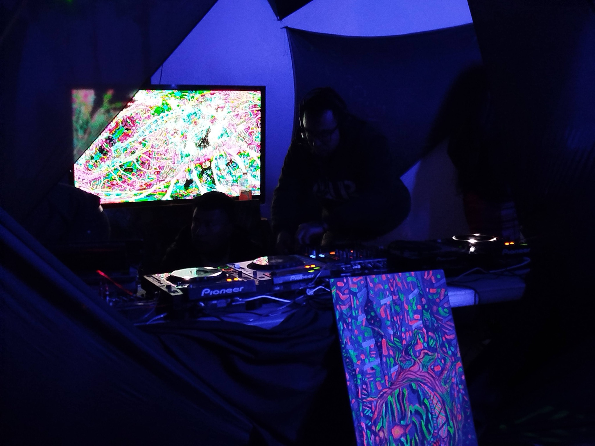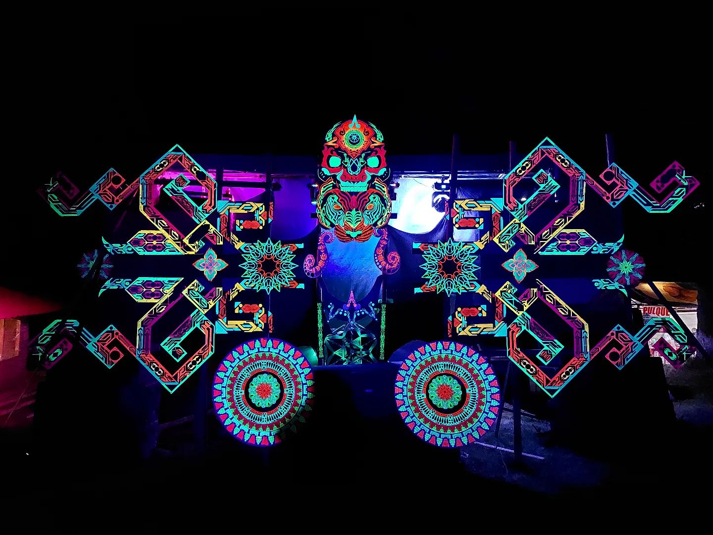 Ecos visuales de noches psicodélicas compartidas bajo la misma frecuencia.